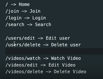 pug에서 h1=pageTitle 이렇게 쓰면 text가 아니라 variable로 인식함 다만 h1은 오직 pageTitle의 값만 가질 수 있음 이렇게 쓰는 거랑 똑같음 다른 text랑 섞어서 사용할 때는 #{}을 이용해서 사용하는 것이 좋음 Conditionals fakeUser를 만들어 주고 home에 fakeUser함수를 보내준다. 와 옛날에는 { fakeUser: fakeUser }이 부분이 이해가 안갔는데 지금은 이해가 간다. conditionals은 JavaScript에서 쓰던 if, else if랑 같음 loggedIn상태일 때는 Log out 링크를 보여주고 아닐때는 Login 링크를 보여줌 Iteration Iteration은 기본적으로 elements의 list를 보여줌 임의로 vid..